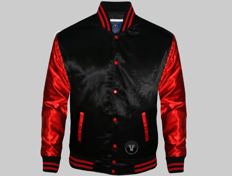 Satin Custom Varsity Jackets made of Top Quality Satin red for body and Polyester Satin Sleeves White. We made it high quality acrylic ribbing bottom, collar, cuff, high quality varsity snaps and inside quilted diamond laser lining for this Satin Custom Varsity Jackets.